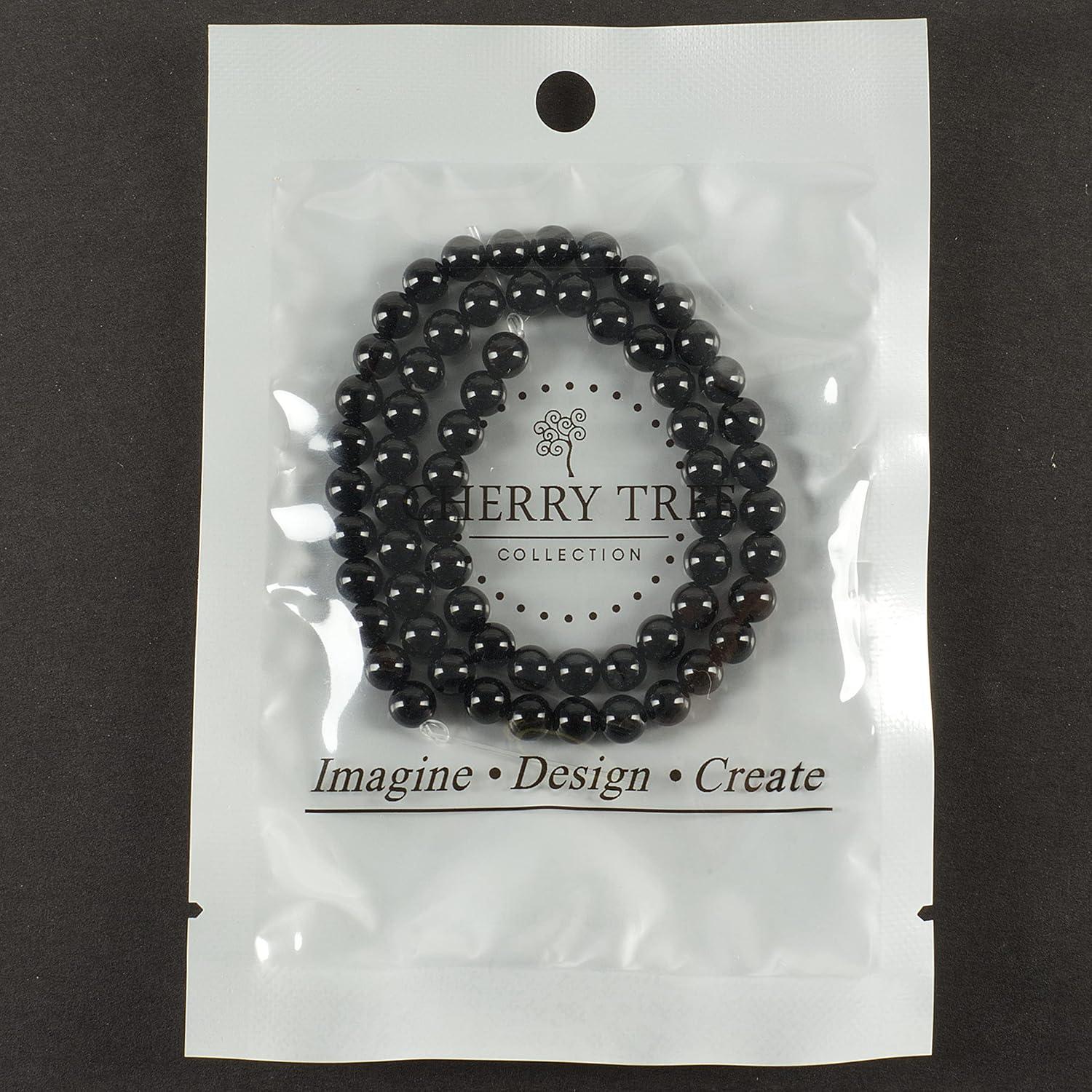 Cherry Tree Collection | 6mm Lace Agate (Blue) Gemstone Round Beads for Jewelry Making | 1 Strand – 60 PCS(black obsidian)